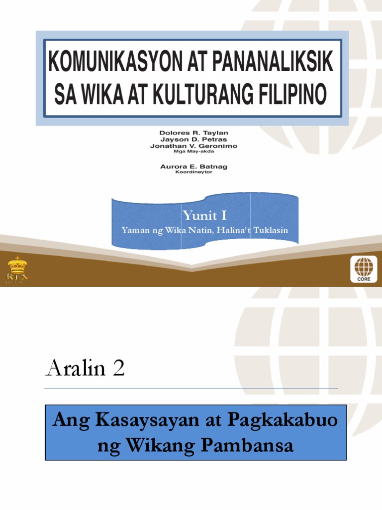 Aralin 2 Ang Kasaysayan At Pagkabuo Ng Wikang Pambansa