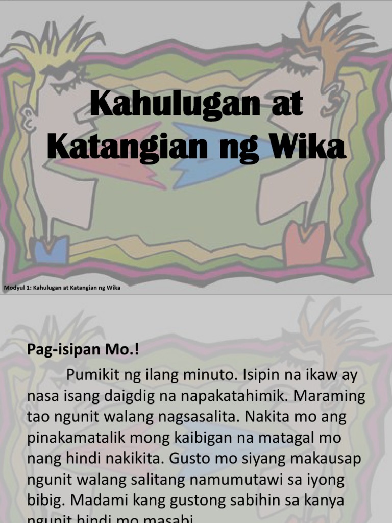 Sa pag-alam din ng katangian mas mauunawaan ang gamit nito kung paano nabubuo ang mga pangungusap gamit ang wika kung paano ito sumasailalim sa pagbabago at paano bibigyan ng. Start studying Filipino Katangian ng Wika. Wikang Swahili atanipena magugustuhan niya ako Wikang Filipino Opo po.