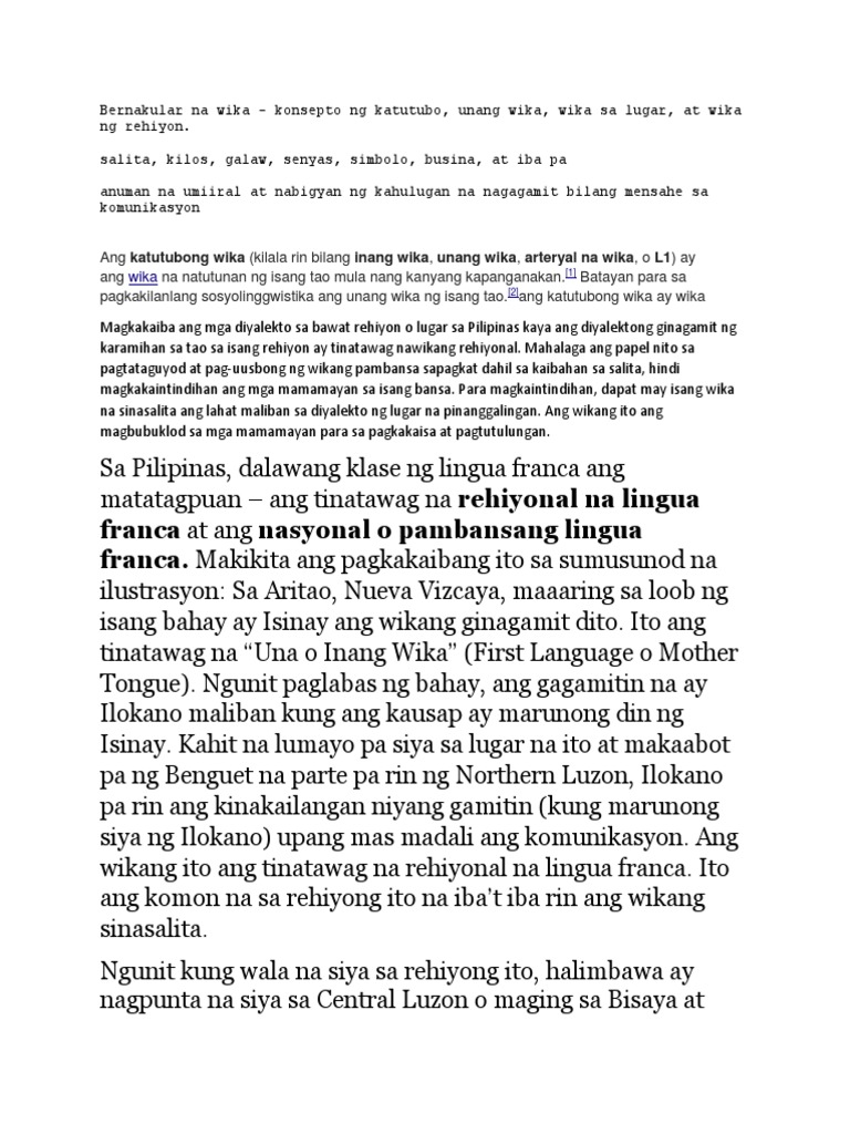 Wika Diyalekto Bernakularx Wika Diyalekto Bernakular Ang Tagalog Sinugbuanong Binisaya Ilokano Hiligaynon Samar Leyte Pangasinan Bikol At Iba Pa Course Hero