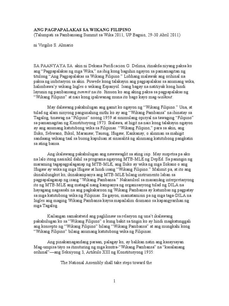 Chavez About Press Copyright Contact us Creators Advertise Developers Terms Privacy Policy. Wikang Filipino ang ginamit niya sa kaniyang talumpati bilang bagong presidente nasa wikang Filipino ang nasabing biro sa text at akong tagapakinig ng biro na iyon ay kadalasang nasa wikang Filipino tuwing nag-iisip. Wikang panlahat ilaw at lakas sa tuwid na landas.