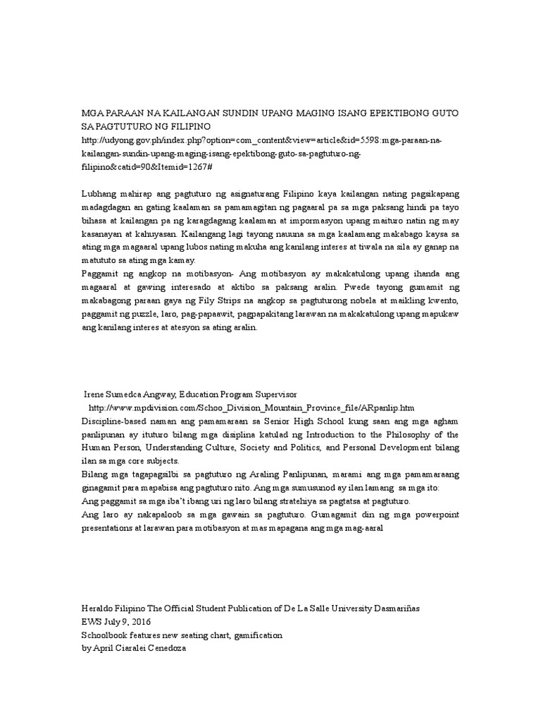 Ang wikang Filipino ay ang pambansang wika at isa sa mga opisyal na wika ng Pilipinasang Ingles ang isa paayon sa Saligang Batas ng 1987. Paano maiuugnay Ang paggamit Ng wikang Filipino sa mass media sa paglaganap o pagdamu Ng mga mamamayang gumagamit na Rin Ng wikang ito. Upang matalakay sa bawat pangkat ang tungkol sa Internet ang pinakamalaking aklatan ngayon at walang iisang teksbuk ang makakatapat dito.