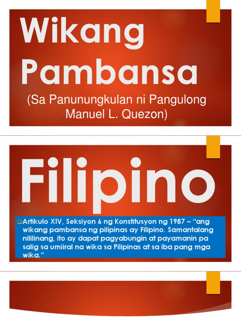 Igiit ang paggamit ng wikang Filipino sa lahat ng larangan at sangay ng karunungan. 11223 sa milestones ng Duterte administration bilang isa itong investment para sa kalusugan ng mga Filipino. 262019 Ang konsepto ng paraang unibersal sa pagdevelop ng wikang pambansa.