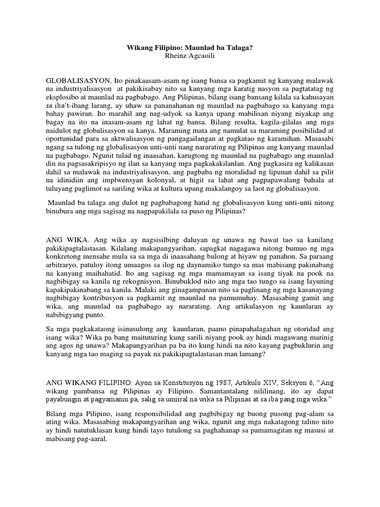 Pdf Kahalagahan Ng Wika Sa Kultura T Pag Unlad Ng Ekonomiya Ng Bansa Funtimeswith Myreene Academia Edu