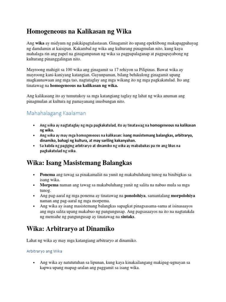 AT K U LT U R A N G P I L I P I N O. Ang literal na ibig sabihin ng salitang homogeneous. Anong kalikasan ng wika ang tumutukoy sa pagkakaiba-iba ng wika bunga ng paggamit ng ibat bang indibidwal at pangkat.