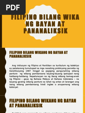 Ang inklusyon ng filipino at panitikan sa kurikulum ng kolehiyo ay patakarang tumutupad sa mga nasabing probisyong panwika ng konstitusyong 1987 hinggil sa pagiging pangunahing wikang panturo ng wikang pambansana kayang kayang. Filipino bilang wikang pambansa wika ng bayan at wikang pananaliksik isang talumpati. Mar 29 2017.
