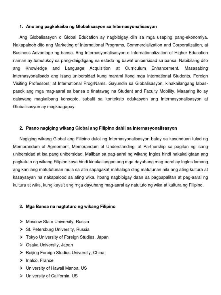 Ang Tagalog ay Tagalog ang Bikolano ay Bikolano at iba pa pero ang Filipino ay halo-halo at iba-iba ng ayon sa lugar tulad ng Englishes. 23082020 Sa pagbubukas ng Filipino sa bang wika pagsunod sa prinsipyo ng na binabalanse ng kahigpitan sa pamamagitan ng pagpapanatili sa isa-sa-isang tumbasan ng letra at tunog pagsunod sa prinsipyo ng simplisidad at ekonomiya lalawak ang bilang ng mga salitang Filipino. Sa loob at labas ng pamantasan gamit ng mga mag-aaral ang Filipino.
