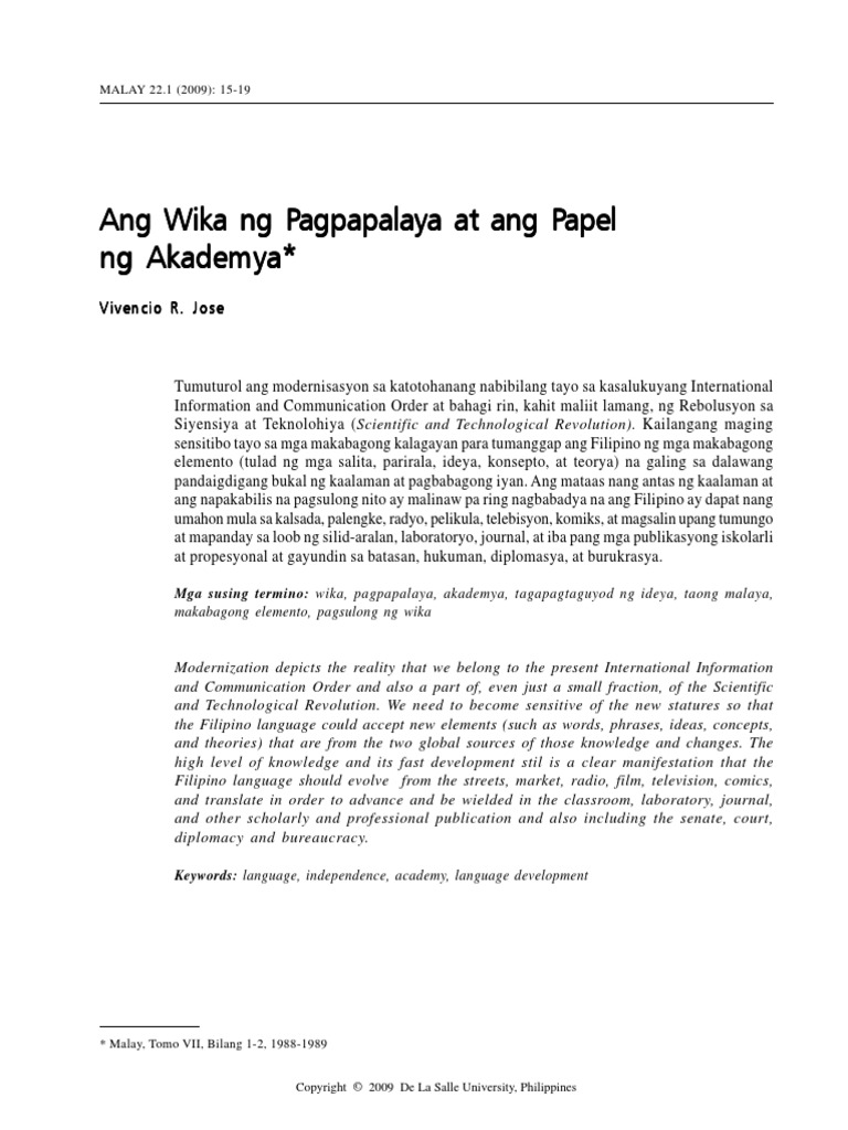 Ang Wika Ng Pagpapalaya At Ang Papel Ng Akademya