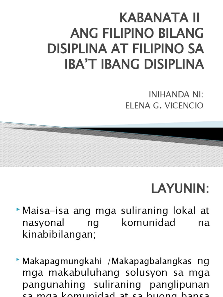 Ang wikang Filipnino sa ibat ibang disiplina by christian ian acal. Nakababatid sa kahalagahan ng wikang Filipino mula sa ibat ibang larangan o disiplina. Ang mga tiyak na layunin ng papel ay ang.