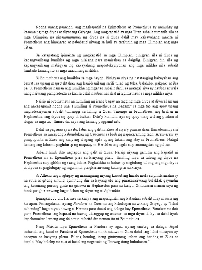 Pandiwa Uri at Aspekto Nito Nakikilala ang isa sa mga kuwentong nagmula sa Mitolohiyang Griyego Nakasasagot sa mga katanungan batay sa akdang binasa 1 oras Ang MITOLOHIYANG GRIYEGO ay koleksyon ng mga kuwentong tinatampukan ng mga Diyos at. Catalina sa lungsod ng Ilagan katuwang ang non-government organizations na Beagiver Good Samaritan Ministry at ilang indibidwal. 24112020 Bago pa man isinalin sa Latin ni Erasmus ang orihinalna mitolohiya isang banga ang ibinigay kay Pandora sa halip na kahon.